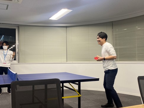 オフィスde卓球:社内交流の時間を増やすため、社内に卓球台を設置。