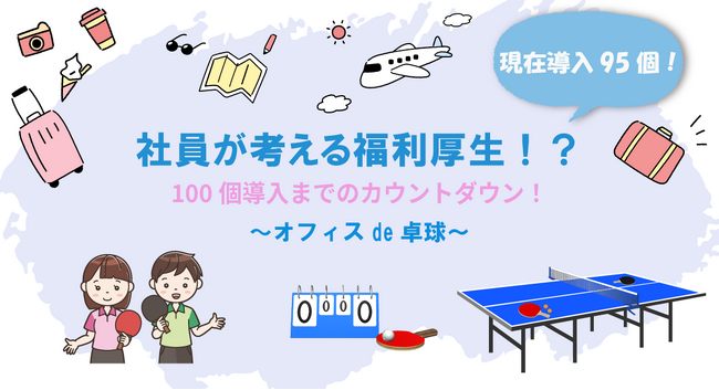 iYell株式会社(本社:東京都渋谷区、代表取締役社長 兼 CEO:窪田光洋、以下「iYell」)は、社員ファーストを理念に掲げ、福利厚生の充実・活用に力を入れている企業として毎月一つずつ導入しておりますが、まもなく100個を迎えること記念し、100個導入までカウントダウンを行います!今月はオフィスde卓球を導入します。