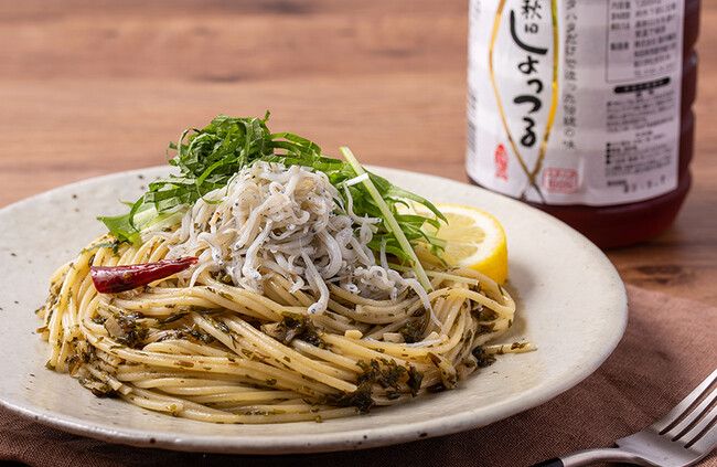 アカモクとしょっつるハタハタのペペロンチーノ
