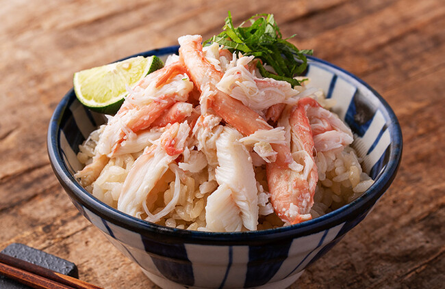 あっさりとした味わいのアサヒ醤油が、紅ズワイガニをより引き立てます。かきこんで食べていただきたい逸品。