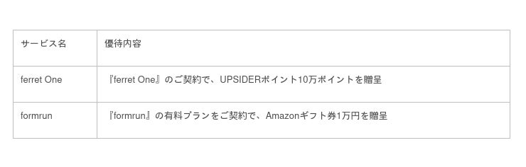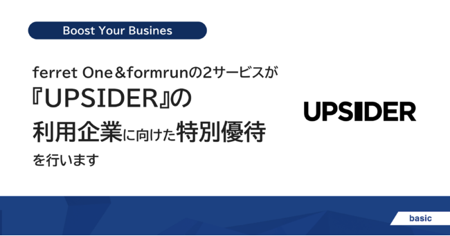 『UPSIDER』利用企業に向けた特別優待。『ferret One』『formrun』をお得に導入。