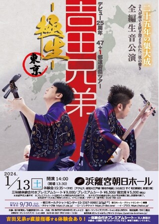 津軽三味線のレジェンドアーティスト『吉田兄弟』。全編生音でお届けする25周年 47+1 都道府県ツアーの皮切り、浜離宮朝日ホールの一般販売が開始!クリエイティブプロデュースに ISARIBIが参画。