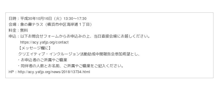 平成30年度クリエイティブ・インクルージョン活動助成 中間報告会