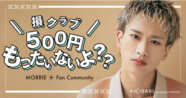 既に「+KIRARI」にて個人ファンコミュニティを開設済みの9名のメンバーに続き、7月28日ボーカル・MORRIEのファンコミュニティ『【損クラブ】500円もったいないよ?』がオープンしました。