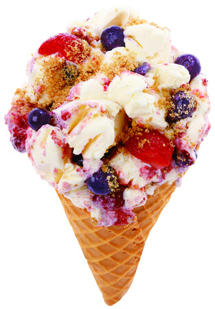 甘みの強いストロベリーアイスクリームに、ストロベリーとラズベリーの果肉、ホイップクリームをたっぷりミックスしたクリエーションアイスクリーム。甘酸っぱいベリーの果肉と甘いホイップクリームの相性は抜群!見た目も華やかな人気商品です。