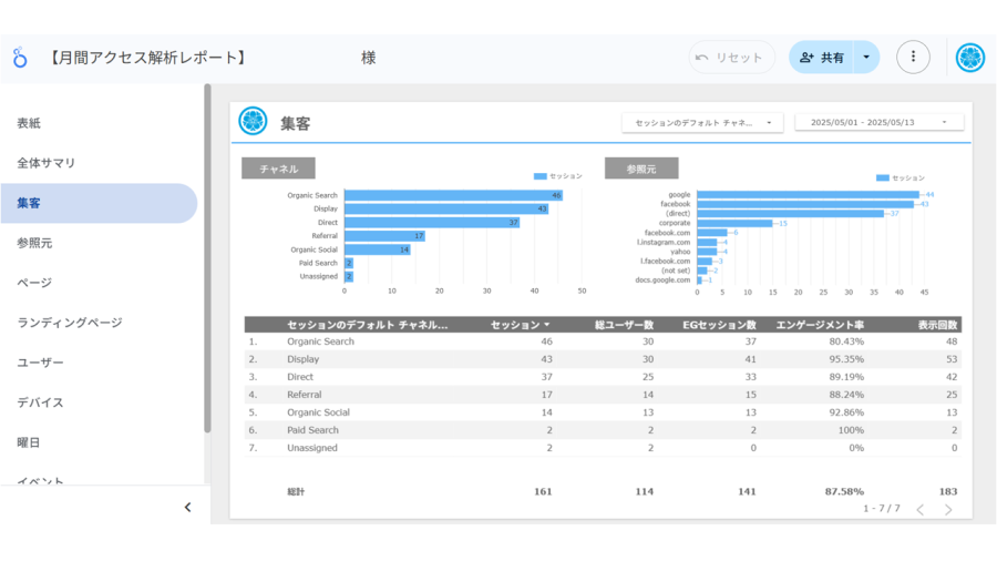 本プランは、Googleのアクセス解析ツール「GA4(Google Analytics 4)」と、さまざまなデータをグラフや表で可視化できる「Google Looker Studio」を活用し、Web広告の成果を分かりやすくレポート化するサービスです。