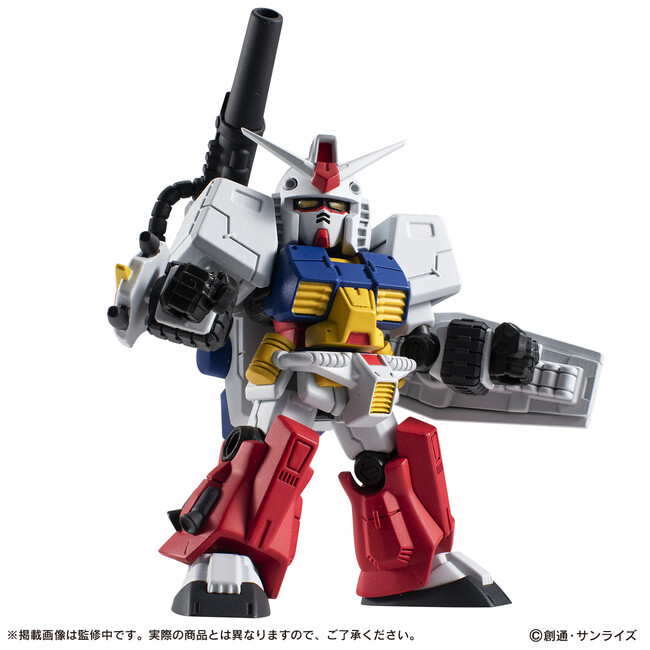 全高約6.5cmで、パーツの組み換えで笑った目の表情を再現したり、「RX-78-2 ガンダム」の再現も可能な豪華仕様です。また「RX-78-2 ガンダム」は、本商品の新規造形となります。