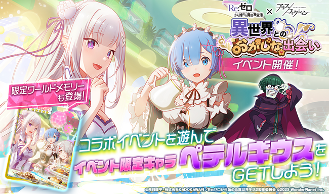 エンターテインメントサービス事業を行うワンダープラネット株式会社(本社:愛知県名古屋市、代表取締役社長CEO:常川友樹、東証グロース:証券コード4199、以下当社)は、好評配信中の新作スマートフォン向けゲーム『アリスフィクション』にて「リゼロコラボキャンペーン」を開催することをお知らせいたします。