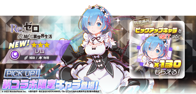 コラボ限定キャラ「★3 レム」をピックアップ