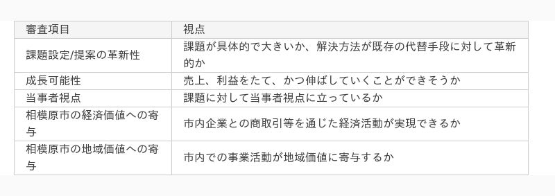 この度、令和6年7月8日(月)から公募を行い、以下の審査基準に則り、書類や面談を通した厳正な審査を経て採択11者が決定しました。