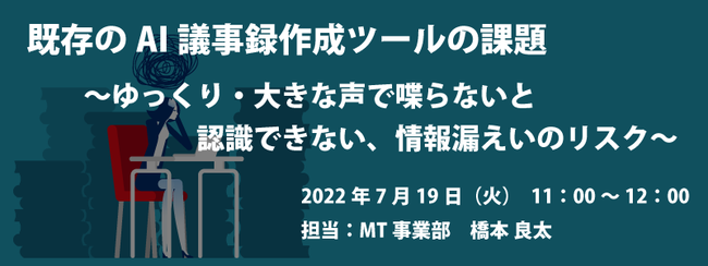 AI自動翻訳のロゼッタ ウェビナー『既存のAI議事録作成ツールの課題〜ゆっくり・大きな声で喋らないと認識できない、情報漏えいのリスク〜』7月19日(火) 開催