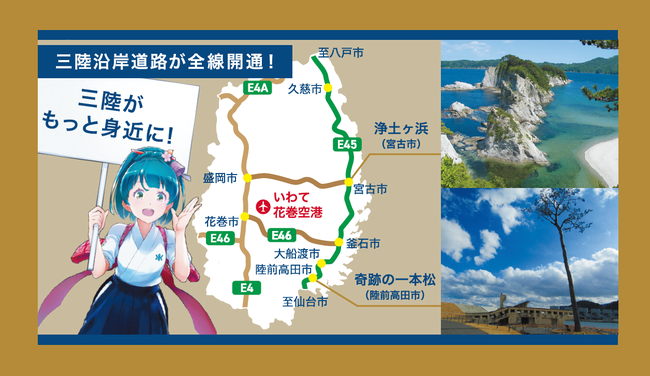 広告の内容は、岩手県のキャッチコピーである「黄金の國、いわて。」と2021年12月に全線開通した「三陸沿岸道路」をモチーフとしたデザインとなっております。