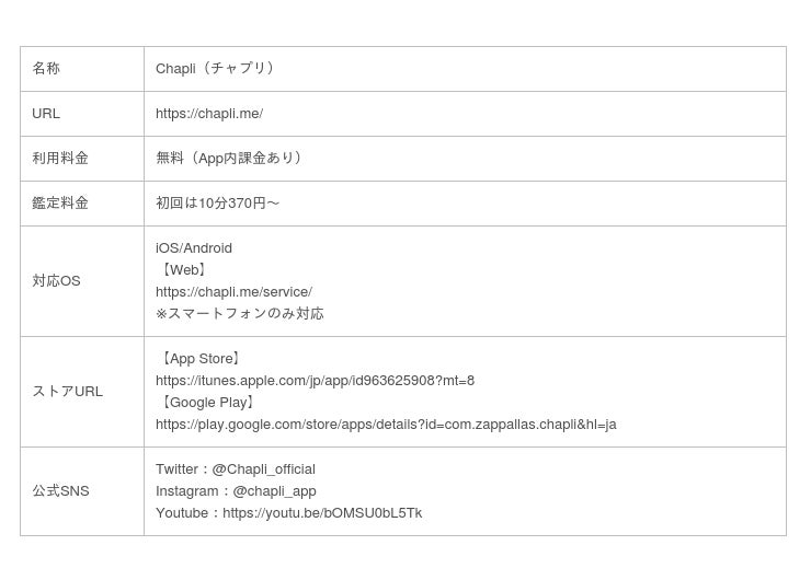 6周年の感謝を込めて、お客様全員に鑑定料金20%オフクーポンをプレゼントいたします。こちらのクーポンは、インストールしなくてもご利用できる『Chapli』のwebブラウザ版でご利用いただけます。