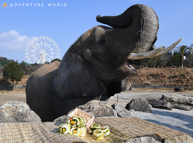 1.アフリカゾウへ特製『恵方巻』をプレゼント