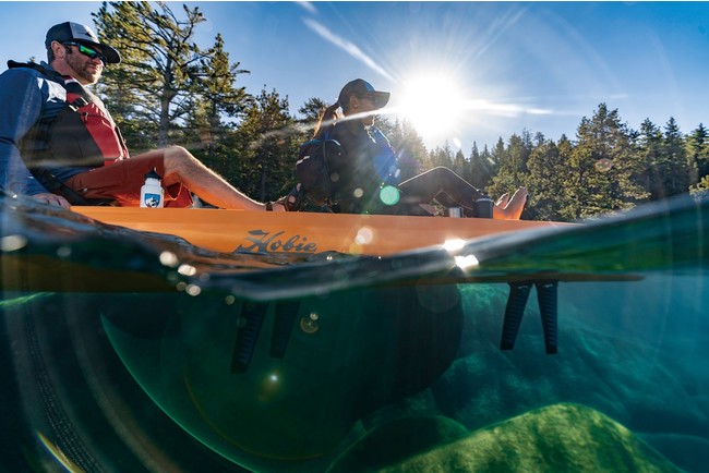 ペンギンが泳ぐ時の羽の動きに着想を得た、HOBIE社独自の足漕ぎ装置「Hobie MirageDrive」(ホビー ミラージュドライブ)は、腕よりも強く耐久性のある脚力を使うことで、効率的な推進力を生むだけでなく、水中の生き物に恐怖心を与えたり、海藻を巻き込んで自然を壊すことがないような自然界への配慮もされている。