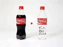 ティーンのコカ・コーラ飲用者・飲料頻度の拡大につながるプロモーション提案。「コカ・コーラ」と同じ色のインクのペンを商品に添え、ペットボトルにメッセージを書き込んでもらうアイデア。中身とメッセージが重なっているときは内容が見えないが、ボトルが空になるにつれて、メッセージが現れる仕組み。