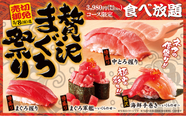 「贅沢まぐろ祭り」の食べ放題は、「贅沢コース(3,980円/税込4,378円)」にてご注文いただけます。