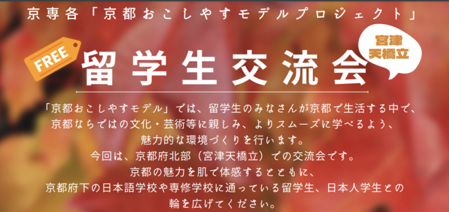 京都の魅力を肌で体感するとともに、京都府下の日本語学校や専修学校に通っている留学生、日本人学生との輪を広げていただく予定です。