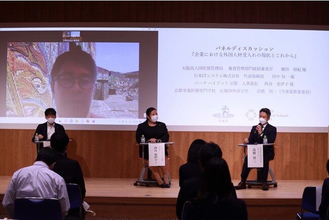 「外国人材受入れの今を知る」をテーマに、外国人材受入れ制度の概要や、外国人材受入れの現状とこれからについて基調講演とパネルディスカッションで発信しました。また、大阪関西万博に向けた機運を醸成しました。