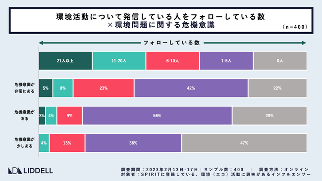 環境に対する危機意識が“非常にある”層の13%が11名以上フォロー。