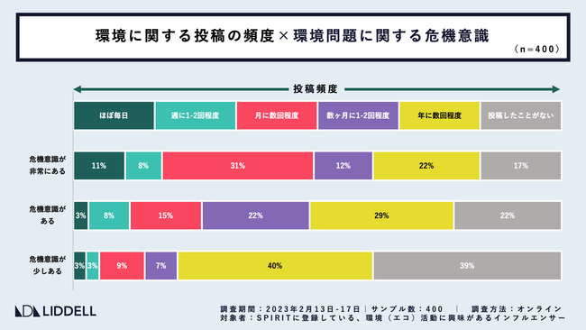環境に対する危機意識が高いほど投稿頻度が多い。