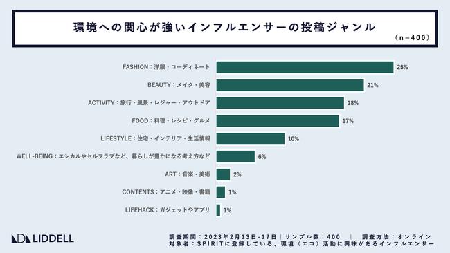 【リデル調査】環境意識の高いインフルエンサーはファッションジャンルが最多。環境に関することは副次的に投稿する傾向がある。