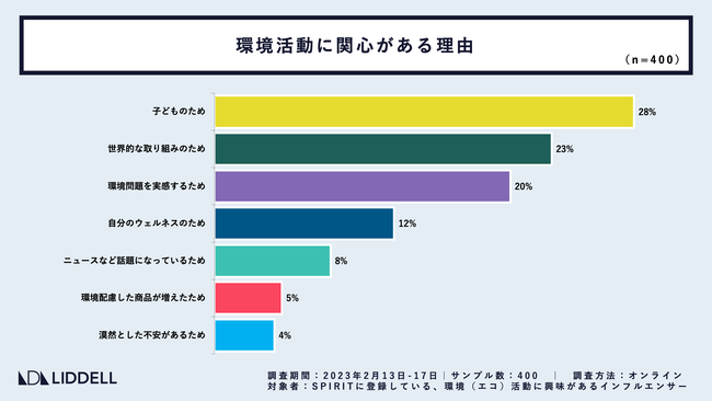 インフルエンサーマーケティング事業を展開するLIDDELL株式会社(本社:東京都港区、代表取締役:福田 晃一、以下リデル)は、ECO/環境活動に興味があるインフルエンサーを対象に、環境に対するアクションや意識を調査しました。
