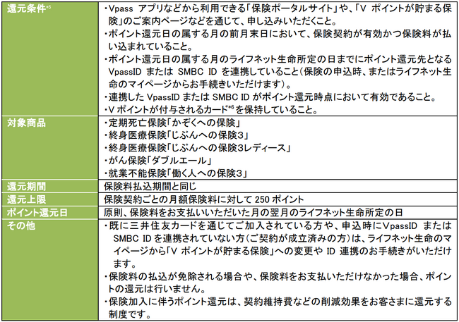なお、VpassIDまたはSMBC IDを連携されていないお客さまへは、ライフネットより「Vポイントが貯まる保険」への変更に関するご案内のメールをお送りいたします。