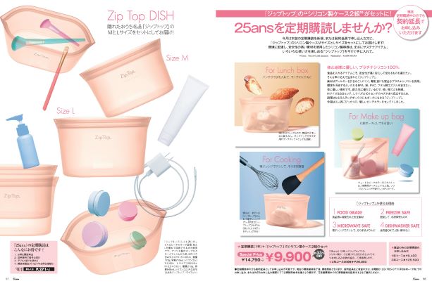 ■『25ans』4月号の定期購読セット商品は、「ジップトップ」のシリコン製ケース2組がセットに