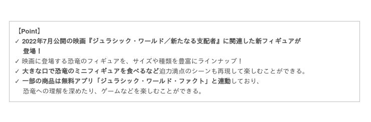 上記のほか、2022年7月公開の映画『ジュラシック・ワールド/新たなる支配者』に関連した商品を多数発売予定です。
