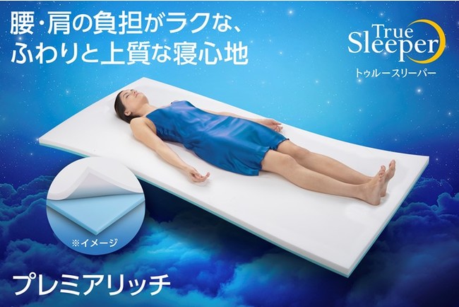 「トゥルースリーパー」は、ブランドスタート当初より、お使いの敷き寝具の上に敷くだけで睡眠時の腰や肩の負担を軽減するオーバーレイタイプのマットレスを主軸に展開してまいりました。多様化するお客様の眠りへのニーズにお応えするべく、新たなラインナップとして、上部3層と下部2層の独自の5層構造の「トゥルースリーパー プレミアベッドマットレス」を7月より発売し、ベッドマットレス市場に本格参入しました。今後も、お客様の至福の眠りの実現をサポートするべく、最新のテクノロジーを駆使し、高い寝心地と機能性を追求した商品の開発をおこなってまいります。