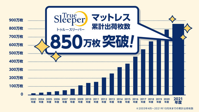 ショップジャパンを展開する株式会社オークローンマーケティング(本社:名古屋市東区、代表取締役会長兼社長:ロバート・W・ローチ)は、日本国内において、トゥルースリーパーシリーズ累計出荷枚数が850万枚※1を突破したことをお知らせいたします。「トゥルースリーパー」は、2003年の販売開始から18年を迎えました。この度の850万枚突破はお客様に長きにわたって支えられてきた結果です。ご愛顧いただいている皆様に感謝申し上げます。