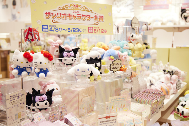 現在サンリオで開催中の人気投票企画「2022年サンリオキャラクター大賞」の投票受付を5月23日(月)まで店内にて行います。サンリオの80キャラクターがエントリーし、WEBやサンリオショップなどからの投票数により順位を決定する毎年人気のイベントです。店頭では、いろいろなキャラクターのグッズをラインアップしキャラクター大賞を盛り上げます。1,100円(税込)以上お買い上げいただくと、550円(税込)ごとに1枚投票チップをお渡し(最大20枚まで)し、そのチップを売り場内に設置されている投票BOXの応援したいキャラクターに投票していただけます。