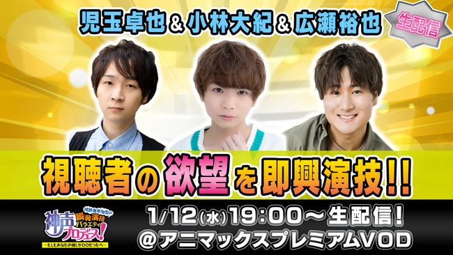 「神声プロデュース!」リニューアル後の第一弾として1月12日(水)に人気声優の3人が生出演!現在、絶賛アーカイブレンタル配信中!こちらもあわせてお楽しみください!