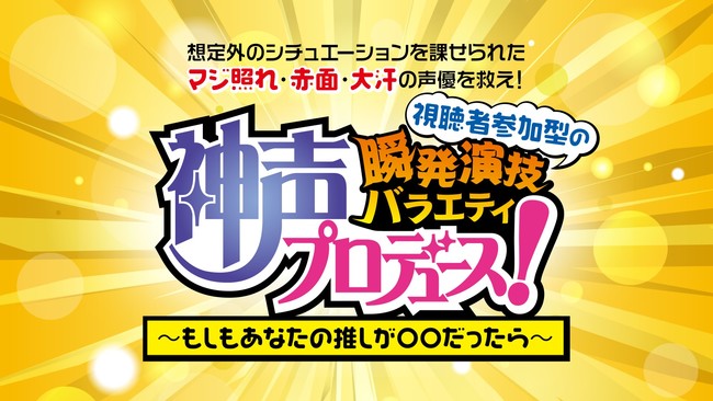 <『神声プロデュース!』〜もしも あなたの推しが〇〇だったら〜>とは、視聴者参加型の瞬発演技バラエティ番組です。