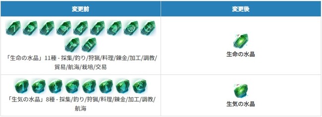 生活コンテンツ毎に分かれていた水晶を始めとして、多岐に渡っていた水晶の統廃合が行われました。