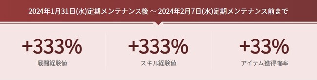2024年1月31日(水)定期メンテナンス後 〜 2024年2月7日(水)定期メンテナンス前まで