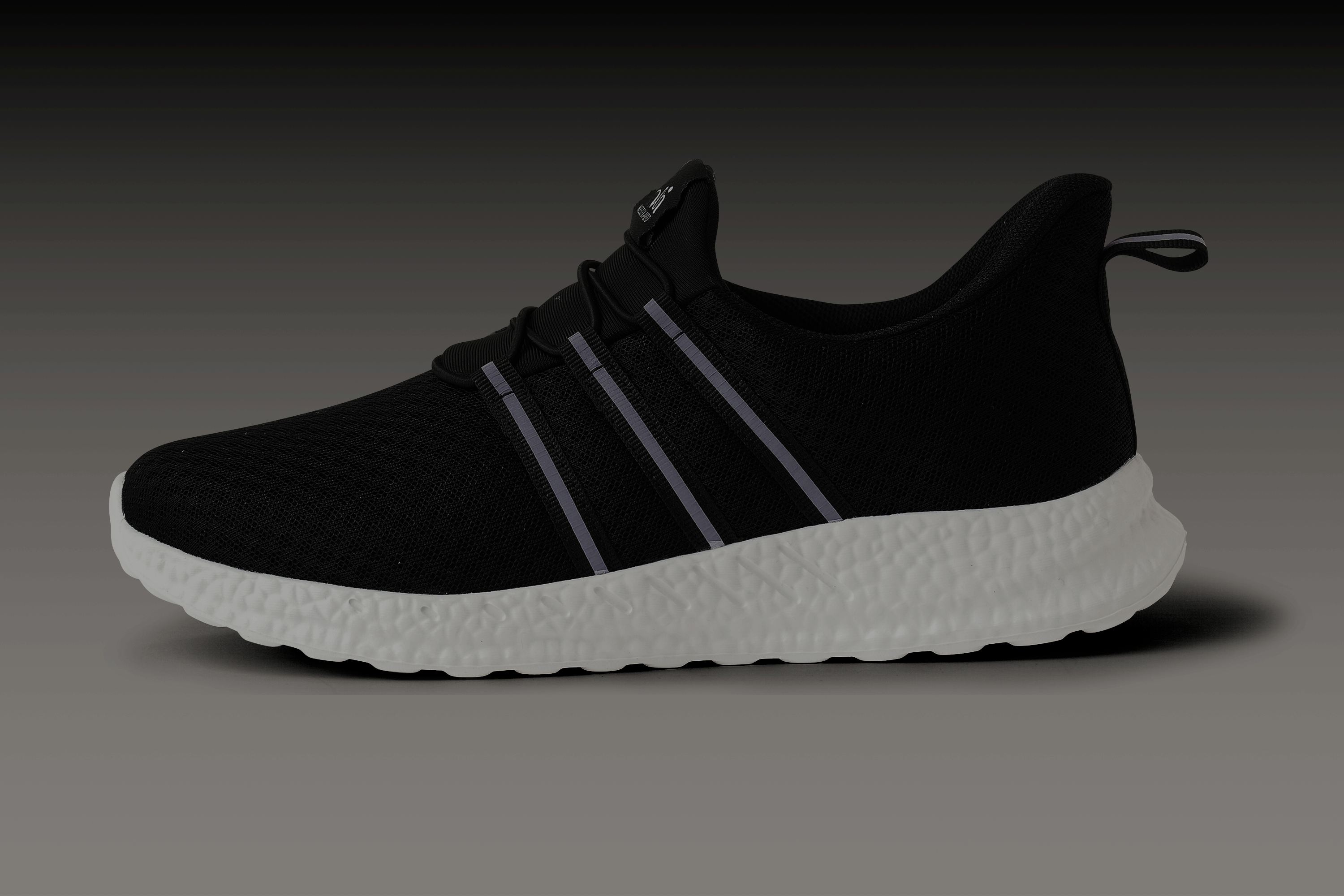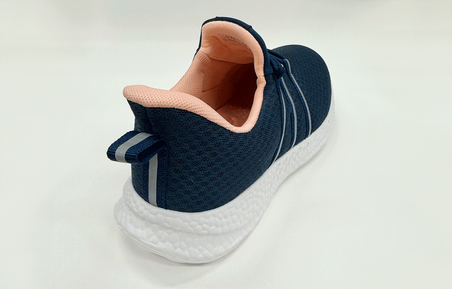 このシューズは暗い場所でも目立つ反射板(リフレクター)が付いており、車や自転車のライトを反射して、暗い道でも自分の存在をしっかりアピールできます。