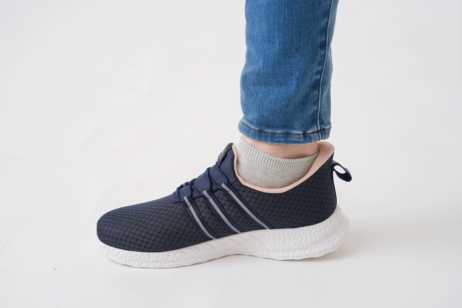 このシューズは、ブラック・グレー・ネイビー×ピンクの3色展開。