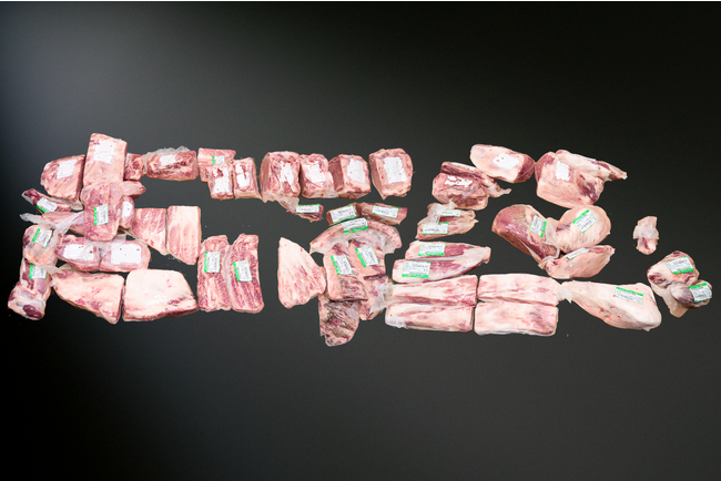 和牛を1頭分カットしてご自宅にお届けします。各部位ごとの調理方法などの参考資料も同封しています。半頭からも購入いただけます。イベントの景品やフェスの目玉にもおすすめです。