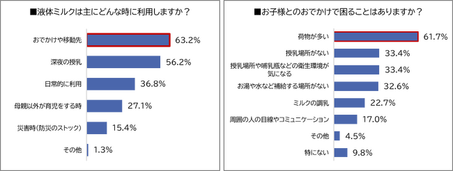 また、調査結果によれば、子どもを連れてのお出かけには荷物が多いと感じる人が61%もおり、液体ミルクの利用がますます重要な存在となっていることが分かりました。