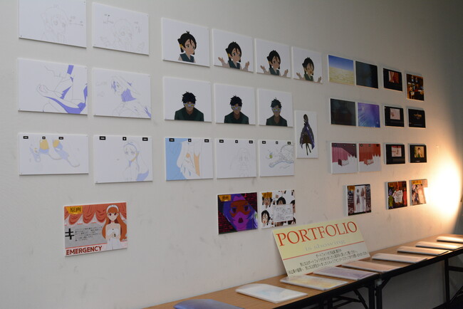 キャラクターデザイン学科の今年のイラスト制作のテーマは「異世界ジョブ」。ポートフォリオは、ゲーム業界希望者やグッズ業界希望者など、将来目指す職種ごとに並べられており、来場者の方からは「どれもどれも見応えのあるものばかりでした」という感想をいただきました。
