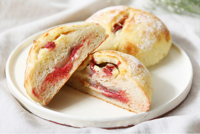 高加水の生地に白あんとホワイトチョコといちごチョコを丁寧に包んで焼き上げました。