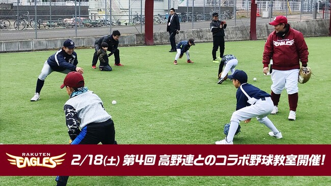 株式会社楽天野球団(本社:宮城県仙台市宮城野区、代表取締役社長:米田 陽介)は、2月18日(土)仙台育英学園高等学校グラウンドにおいて、宮城県高等学校野球連盟と楽天イーグルスが野球教室を共同開催することとなりましたので、お知らせいたします。