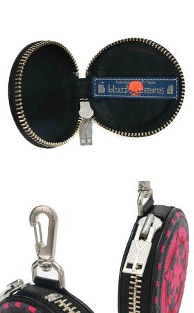 ボトムのベルトループにぶら下げるスタイルのコイン&カードケース。刺繍糸のカラーグラデーションによって立体的なモチーフを表現。ケースの内側は黒のスエード張りとなり、blackmeansの織りネームがベルトの役割りを担うカード収納の機能を持たせている。カラビナにはペールピンクでデジタルフォントのLIMI feuロゴを刻印。鳩をモチーフにしたbackmeansのオリジナルスライダーは、ケースのデザイン性と耐久性を共に向上させている。イヤフォンケースとしての使用も可能。
