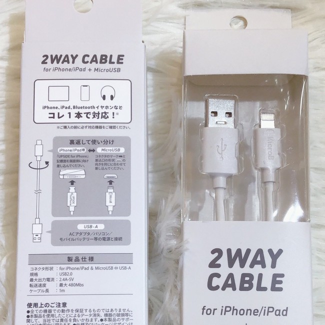 何本も充電ケーブルを持つのも管理するのも面倒だけど仕方ないといったお悩みを解決する2種類の充電ケーブルが1つになった一石二鳥のアイテム。