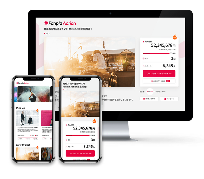 Fanpla Actionは、アーティストとファンの双方が期待するエンターテインメントを実現するために、一丸となってアクションする場です。従来のクラウドファンディングの「支援」という枠にとらわれず、アーティストとファンがアイデアを「共創」し、ファンサービスとして実現していきます。