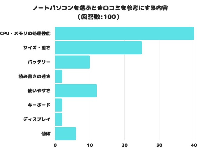 【調査レポート】ノートパソコンを選ぶとき口コミを参考にする内容はどれ?1位は「CPU・メモリの処理性能」でした!