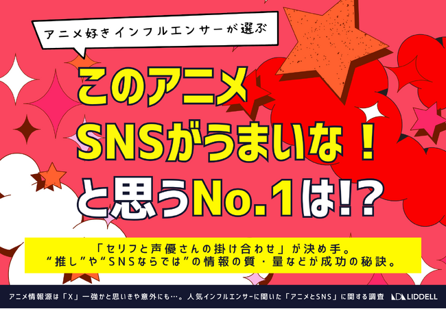 【リデル調査】アニメ好きインフルエンサーが選ぶ「このアニメ、SNSがうまいな!」と思うNo. 1は!?「セリフと声優さんのコラボ」「推しや SNS特有 の情報の質・量」など成功の秘訣が明らかに