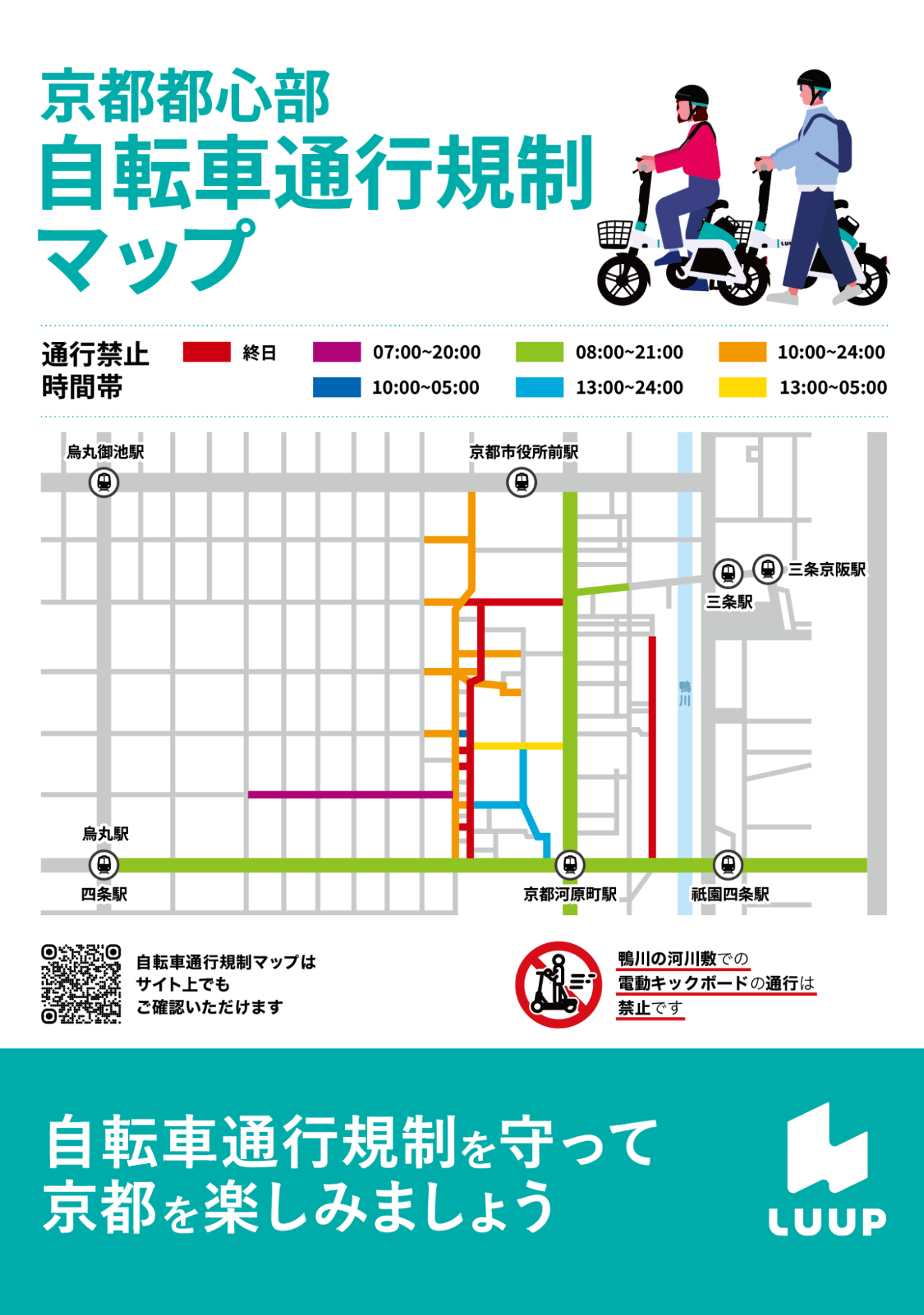 10月24日(金)より、京都市都心部の自転車交通規制マップを、京都駅など市内10箇所のLUUPポートに掲示し、交通マナー向上のための啓発活動を実施します。